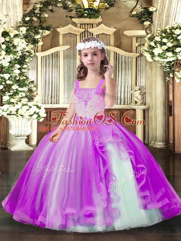 Home >  Special Occasion Dresses >  Lovely Little Girl Pageant Dresses > Superior Lilac Sleeveless Tulle Lace Up Little Girl Pageant Gowns for Party and Sweet 16 and Wedding Party
