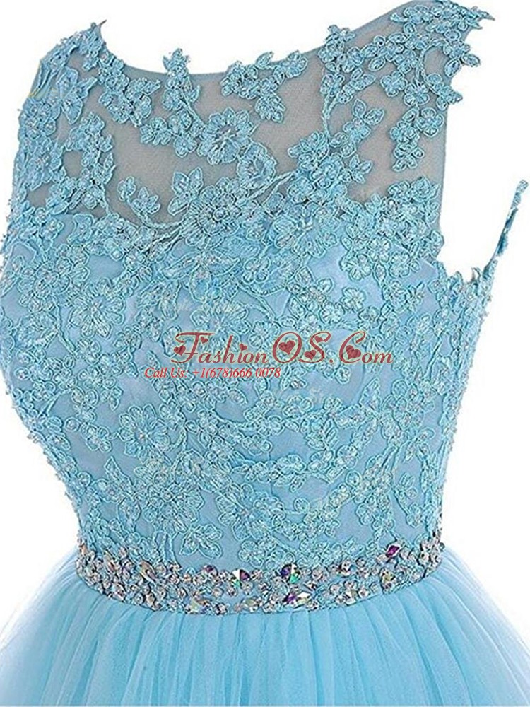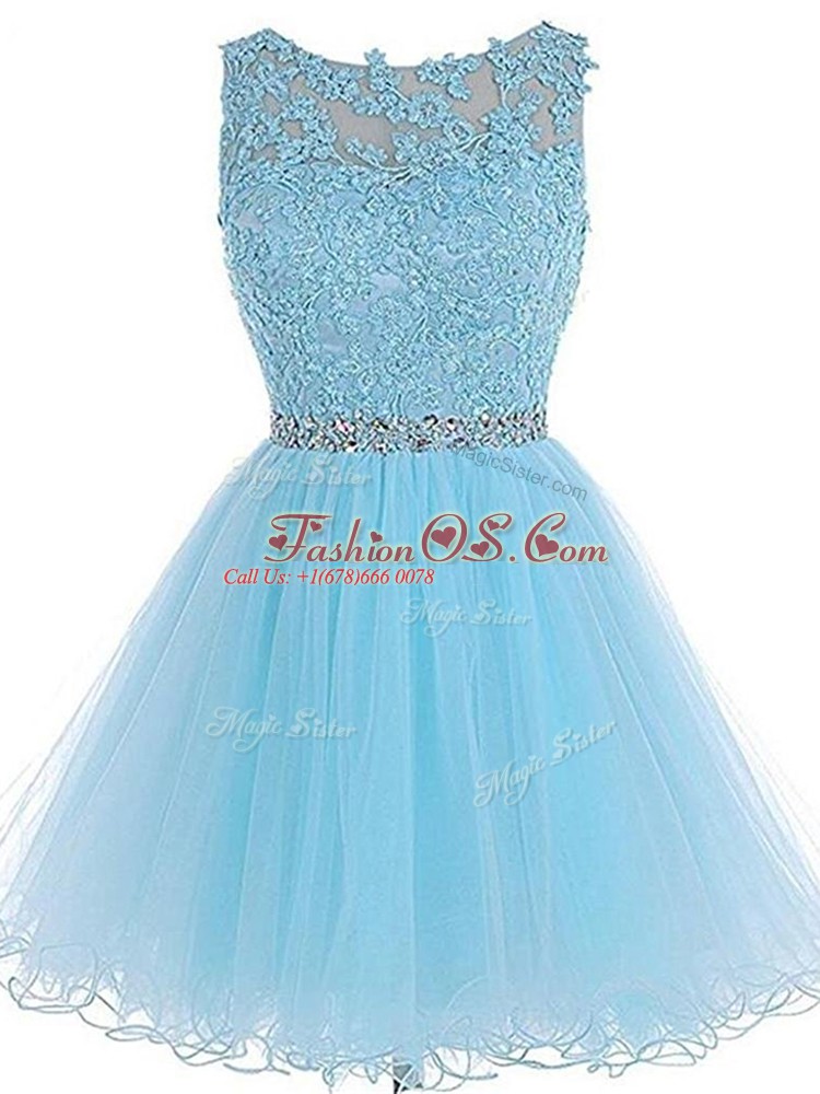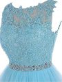 Superior Mini Length Baby Blue Cocktail Dresses Tulle Sleeveless Beading and Lace and Appliques