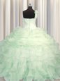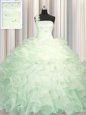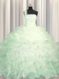 Home >  Quinceanera Dresses >  Custom Made Quinceanera Dresses > Superior One Shoulder Apple Green Ball Gowns Beading and Ruffles Quinceanera Dress Zipper Organza Sleeveless Floor Length