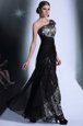 Home >  Prom Dresses >  Modest Prom Dresses > Superior One Shoulder Lace Black Sleeveless Embroidery Floor Length Prom Evening Gown