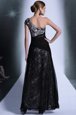 Superior One Shoulder Lace Black Sleeveless Embroidery Floor Length Prom Evening Gown