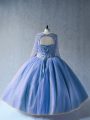 Superior Scoop Long Sleeves Quinceanera Dresses Floor Length Beading Blue Tulle