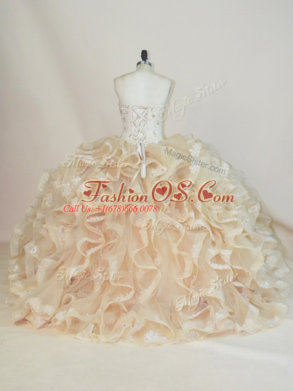 Superior Sleeveless Lace Up Floor Length Beading and Ruffles Sweet 16 Quinceanera Dress