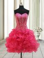 Superior Sweetheart Sleeveless Lace Up Prom Dress Hot Pink Organza