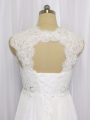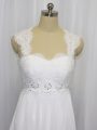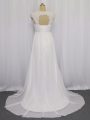Superior White Sleeveless Brush Train Beading and Lace Wedding Dress