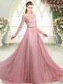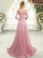 Sweep Train Empire Prom Dress Pink Scoop Chiffon Long Sleeves Zipper