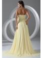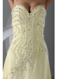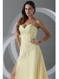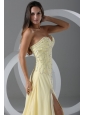 Home >  Prom Dresses >  Popular Prom Dresses > Sweep Train High Slit Light Yellow Prom Dress with Beading