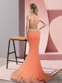 Sweep Train Mermaid Evening Dress Aqua Blue High-neck Satin Sleeveless Zipper