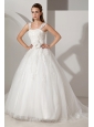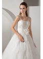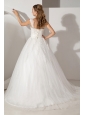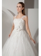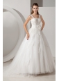 Home >  Wedding Dresses >  Beautiful Wedding Dresses > Sweet A-line Straps Wedding Dress Appliques Court Train Tulle and Taffeta