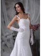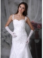 Home >  Wedding Dresses >  Beautiful Wedding Dresses > Sweet A-line Straps Wedding Dress Organza Appliques and Ruch Brush Train