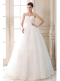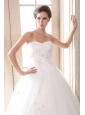 Sweet A-line Sweetheart  Beading and Appliques Wedding Dress Floor-length Tulle