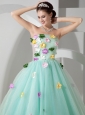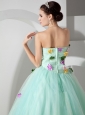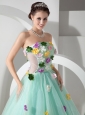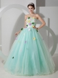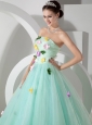Home >  Quinceanera Dresses >  15 Quinceanera Dresses > Sweet Apple Green A-line Strapless Quinceanera Dress Organza Hand Made Flowers Floor-length