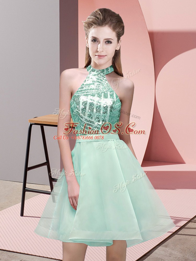 Home >  Bridesmaid Dresses >  Hot Sale Bridsmaid Dresses > Sweet Apple Green Sleeveless Mini Length Sequins Backless Bridesmaids Dress