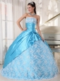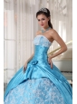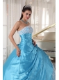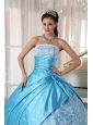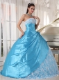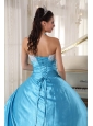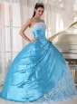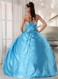 Sweet Aqua Blue Quinceanera Dress Strapless Taffeta Lace Ball Gown