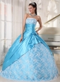Home >  Quinceanera Dresses >  Perfect Quinceanera Dresses > Sweet Aqua Blue Quinceanera Dress Strapless Taffeta Lace Ball Gown