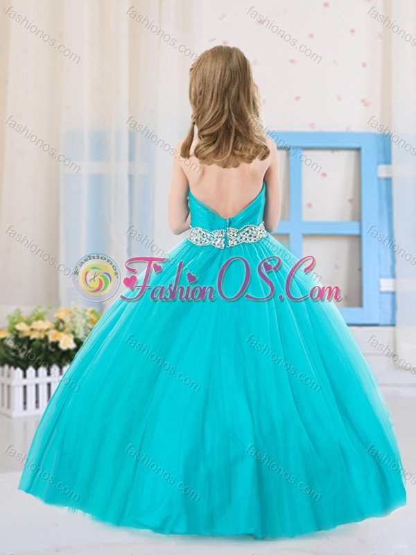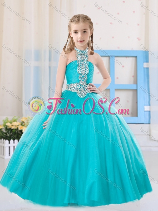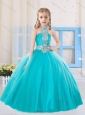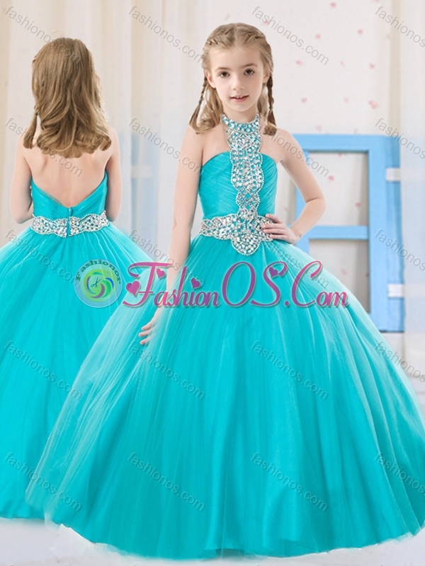 Home >  Special Occasion Dresses >  Mini Quinceanera Dresses > Sweet Ball Gown Halter Beading Aqua Blue Mini Quinceanera Dress in Tulle