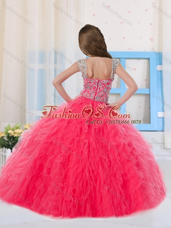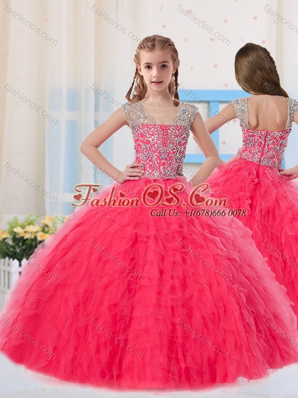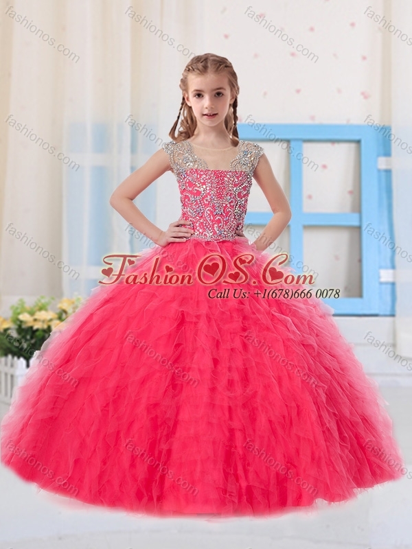 Home >  Special Occasion Dresses >  New Style Little Girl Pageant Dresses > Sweet Ball Gowns Scoop Long Coral Red Little Girl Pageant Dress with Beading