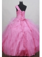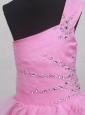 One shoulder pink tulle dress will certainly make you a queen on your event day. Bodice is delicate adorned by beading. The back is fitted with lace up ties .Customize to your own apecial requirements.