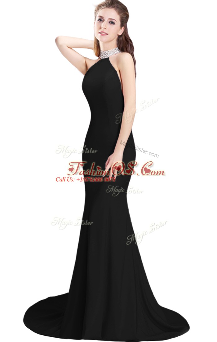 Home >  Prom Dresses >  Perfect Prom Dresses > Sweet Black Side Zipper Prom Evening Gown Beading Sleeveless Brush Train