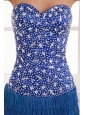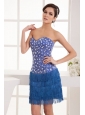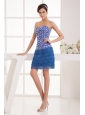 Sweet Blue Column Sweetheart Mini-length Beading Organza Prom Dress