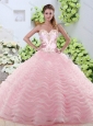 Sweet Brush Train Quinceanera Dresses with Beading and Ruffled Layers