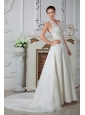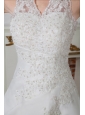 Home >  Wedding Dresses >  Popular Wedding Dresses > Sweet Column Halter Appliques Wedding Dress Court Train Satin