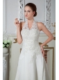 Sweet Column Halter Appliques Wedding Dress Court Train Satin