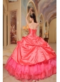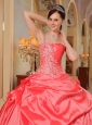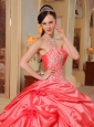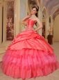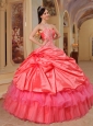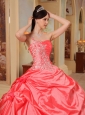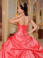 Sweet Coral Red Quinceanera Dress One Shoulder Taffeta Ball Gown