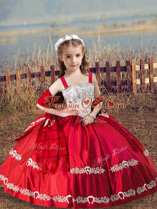 Sweet Coral Red Straps Neckline Beading and Embroidery Little Girls Pageant Gowns Sleeveless Lace Up