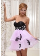 An flirty cute short dress fits for most of the social occasion. The strapless sweetheart neckline with a black bust to show your feminine or girly slim. Sedate black exquisite appliques make the dress elegant. The appliques on the short dress is a fantasting creation that adds the charming to you. The super cute mini skirt with sheer layers give it a full sassy style that will look great on the dance floor and zipper up back finishes the look. You're sure to land on everyone's best dress list.