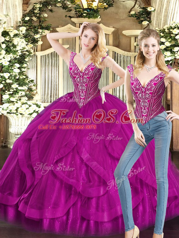 Home >  Quinceanera Dresses >  Fast Delivery Quinceanera Dresses > Sweet Floor Length Ball Gowns Sleeveless Fuchsia Sweet 16 Quinceanera Dress Lace Up