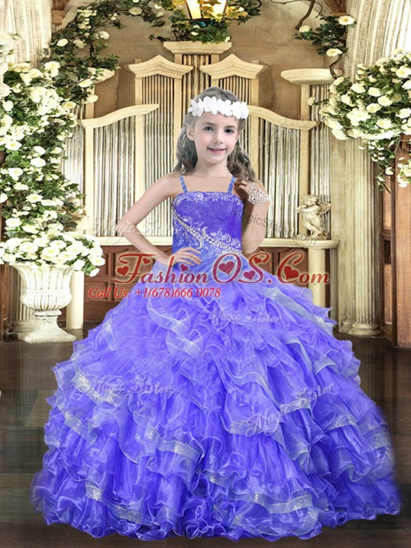 Home >  Special Occasion Dresses >  Pretty Little Girl Pageant Dresses > Sweet Floor Length Lace Up Little Girl Pageant Gowns Lavender for Party and Quinceanera with Beading and Ruffled Layers