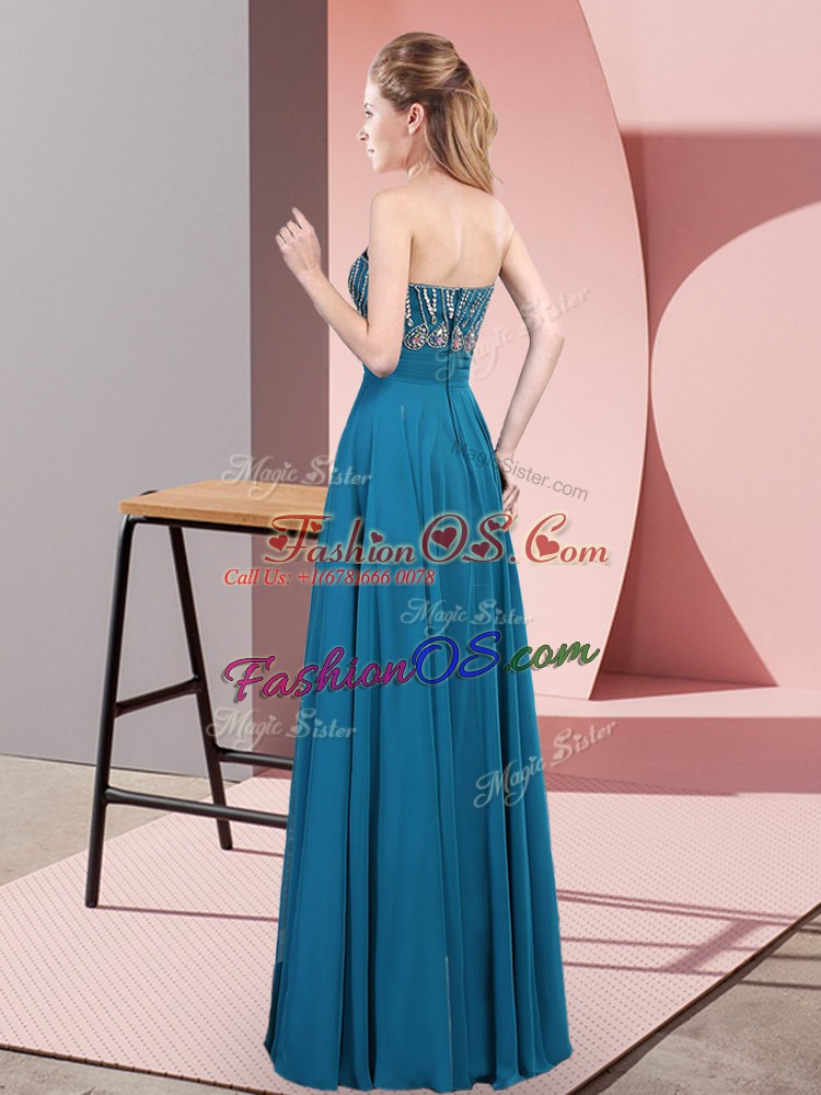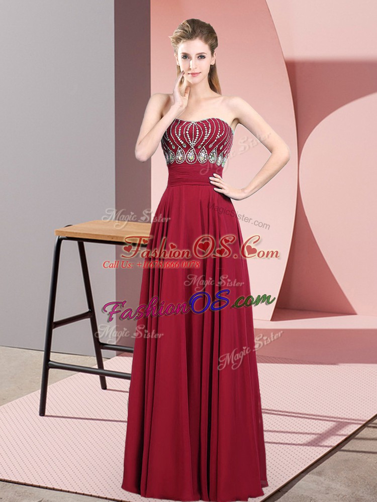 Sweet Floor Length Zipper Prom Dresses Red for Prom and Party and Military Ball with Beading