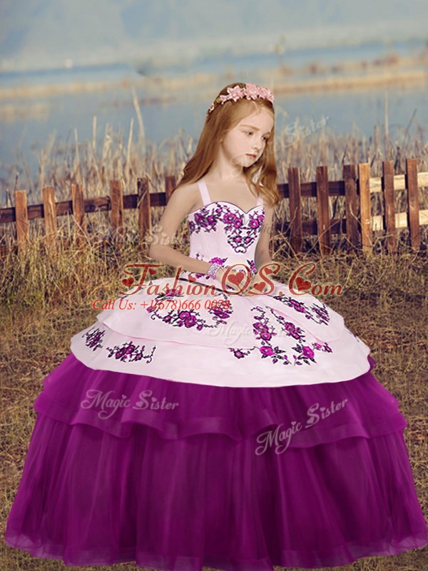 Home >  Special Occasion Dresses >  Lovely Little Girl Pageant Dresses > Sweet Fuchsia Ball Gowns Tulle Straps Sleeveless Embroidery Floor Length Side Zipper Little Girls Pageant Dress Wholesale