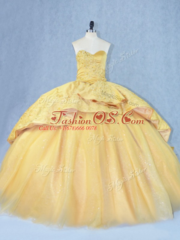 Sweet Gold Sweetheart Neckline Beading and Appliques Sweet 16 Dress Lace Up