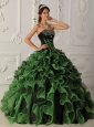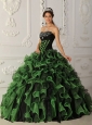 Sweet Green Quinceanera Dress Sweetheart Organza Beading Ball Gown