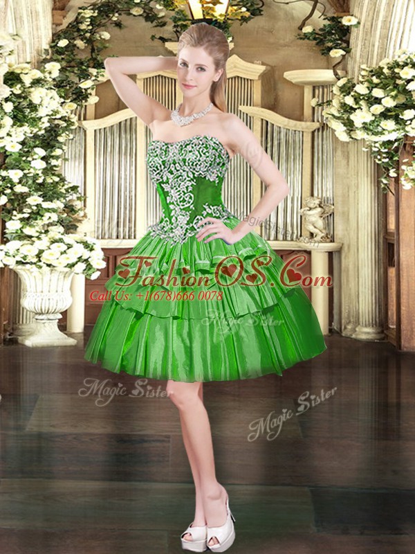 Sweet Green Strapless Lace Up Beading and Ruffled Layers Quince Ball Gowns Sleeveless