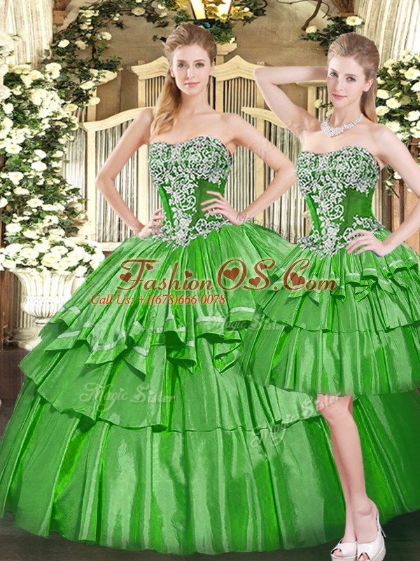 Home >  Quinceanera Dresses >  Detachable Quinceanera Skirts > Sweet Green Strapless Lace Up Beading and Ruffled Layers Quince Ball Gowns Sleeveless