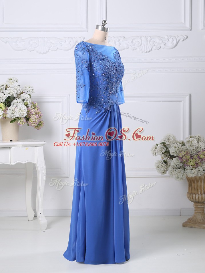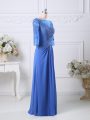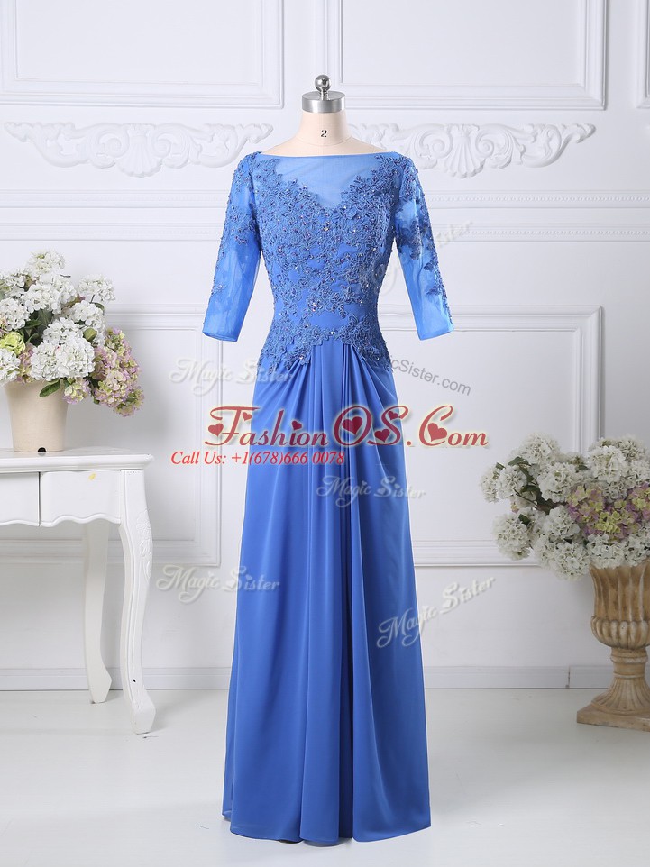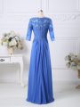 Sweet Half Sleeves Chiffon Floor Length Zipper Mother Of The Bride Dress in Blue with Lace