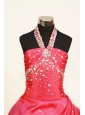 Sweet Halter Beaded Decorate Tulle Red Flower Girl Pageant Dress