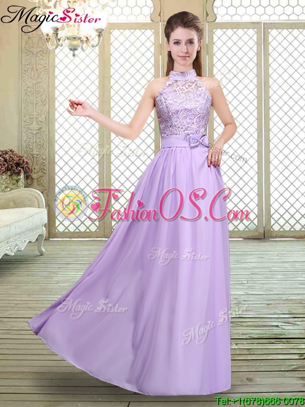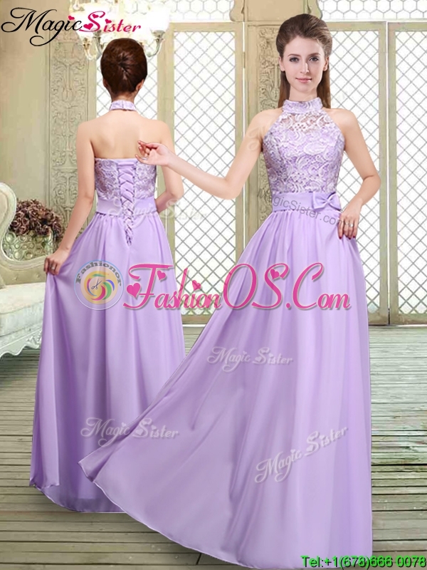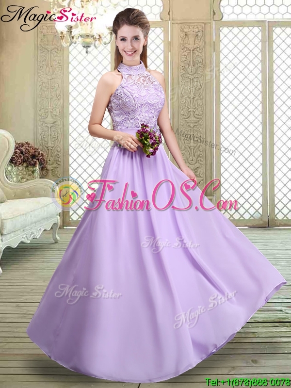 Sweet High Neck Lace Lavender Bridesmaid Dresses
