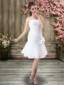 Sweet Knee Length White Wedding Gown Chiffon Sleeveless Hand Made Flower