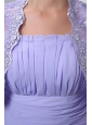 Step into the season in style with this elegant formal evening dress.It`s all topped off by ultra-fine spaghetti straps.Its fitted bodice is festooned with pleating accents with flounced trim. A broad ruched band defines the draped waist above the flowy overlay of the floor-length skirt, setting a majestic tone.The A-line skirt is made from many layers of slightly gathered fabric so that it moves beautifully when you walk, wrapping your legs in luxurious fabric. An absolutely lovely choice for any special occasion.A intricate lace embroidered matching jacket adds the fullness to its feminine beauty.