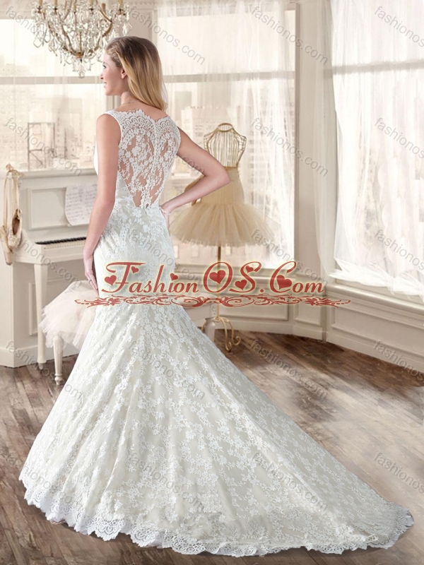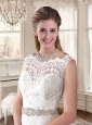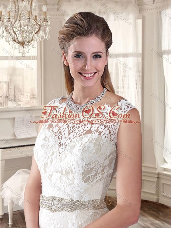 Home >  Wedding Dresses >  Romantic Wedding Dresses > Sweet Mermaid Bateau Wedding Dresses with Belt and Lace