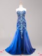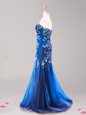 Sweet Mermaid Tulle Sleeveless Evening Dress Brush Train and Beading and Appliques
