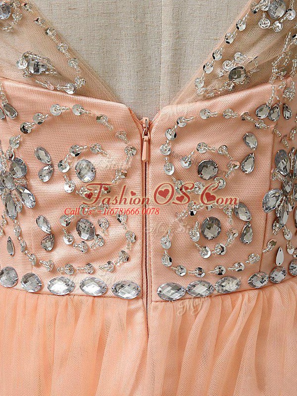 Sweet Mini Length A-line Sleeveless Baby Pink Prom Dress Zipper