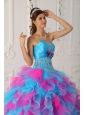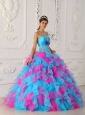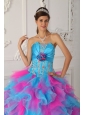 Sweet Multi-color Quinceanera Dress Strapless Organza Appliques and Hand Flower Ball Gown