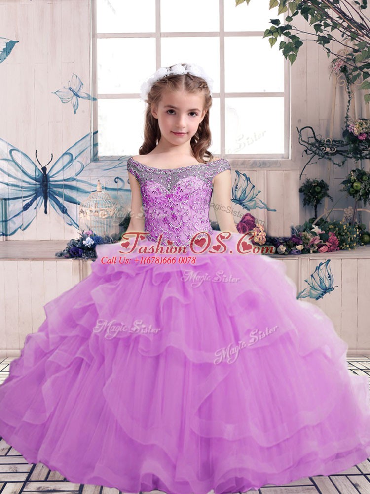 Sweet Off The Shoulder Sleeveless Tulle Little Girl Pageant Gowns Beading Lace Up
