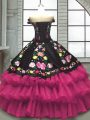 Home >  Quinceanera Dresses >  Puffy Quinceanera Dresses > Sweet Organza and Taffeta Sleeveless Floor Length Quince Ball Gowns and Embroidery and Ruffled Layers