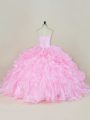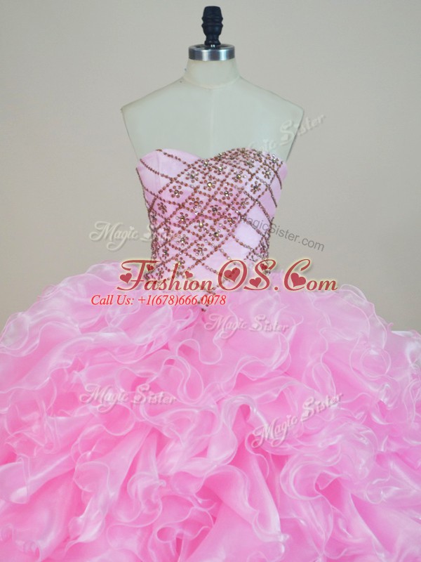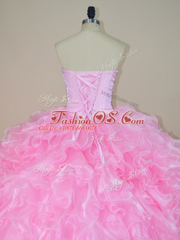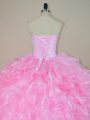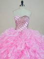 Sweet Organza Sweetheart Sleeveless Lace Up Beading and Ruffles Sweet 16 Quinceanera Dress in Baby Pink